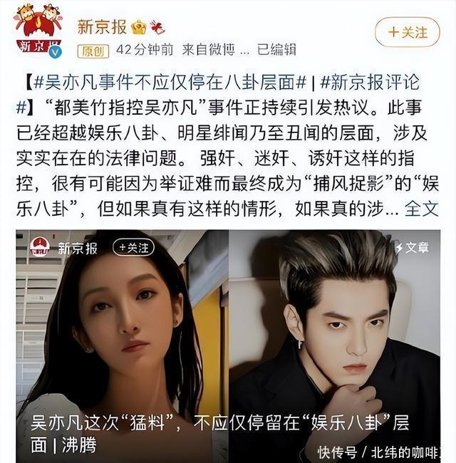 有人说他“太功利”,可翻看他的微博,除了工作动态就是练舞视频,这种“绯闻留白换事业满格”的选择,或许正是他在娱乐圈站稳脚跟的生存智慧。 吴某某 从顶流到阶下囚,底线崩塌的警示标本! 如果说黄子韬是“正面范本”,吴某某就是四子中最惨痛的“反面教材”。 2021年7月,都美竹等人的指控撕开了他“顶流光环”下的阴暗面:以“选演员”“做音乐”为借口欺骗女性,甚至涉及未成年人。